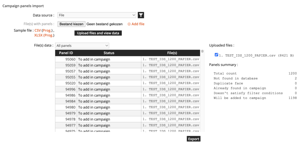 Het is binnen IDS mogelijk om een campagne te maken op basis van een file dat je zelf hebt samengesteld of hebt ontvangen van bijvoorbeeld een publisher. Ga hiervoor naar de sectie ‘Campaigns’ en klik helemaal rechts op + New Campaign. Je ziet dan onderstaand scherm, wat uit twee delen bestaat: