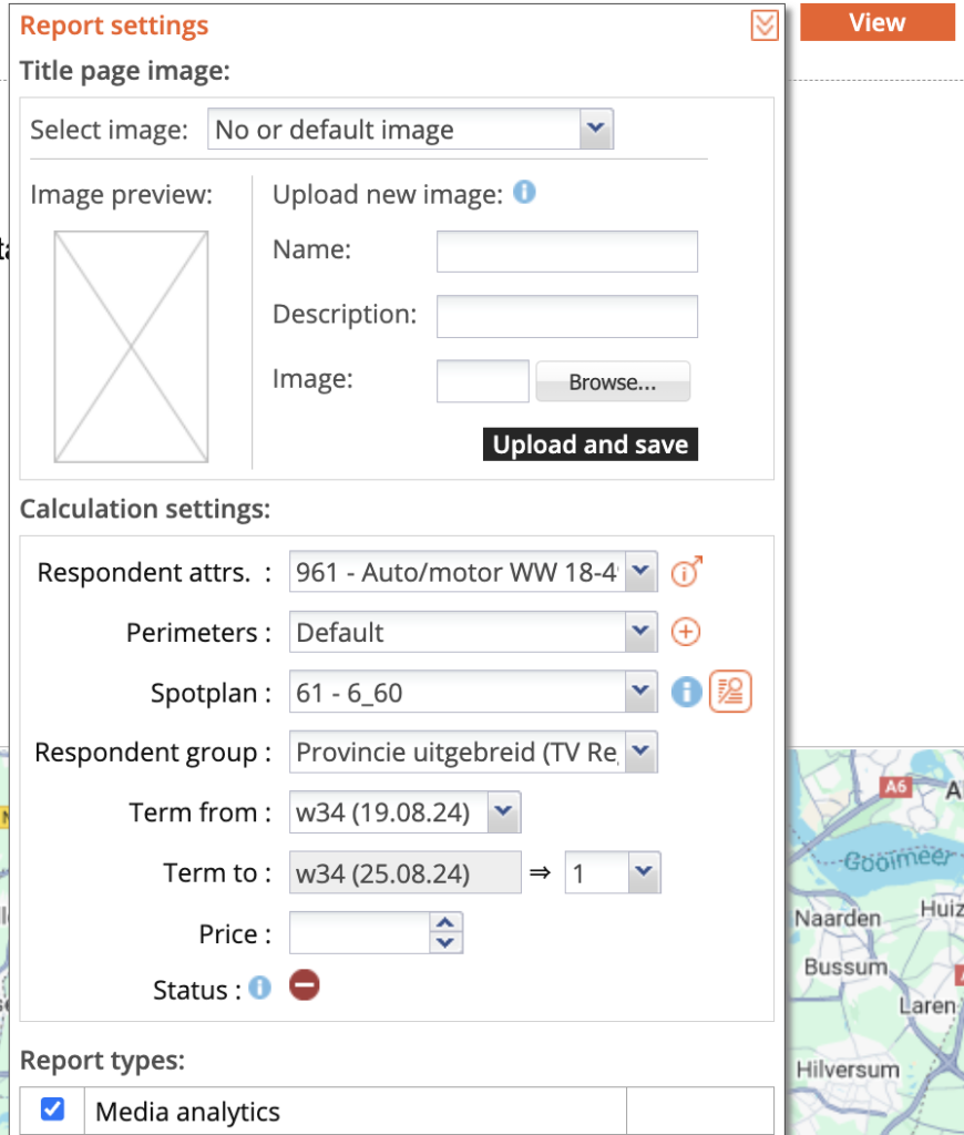 Je hebt nu een template gemaakt met een doelgroep, maar wat kun je daar mee? Onder ‘Reports’ hadden we al gezien hoe je het bereik van een campagne kunt berekenen. Tot nu toe hebben daar geen doelgroep en/of template bij gebruikt. Nu gaan we dat wel doen. Ga naar ‘Campagne’ en kies bijvoorbeeld weer het eerste JIC Pakket en ga dan naar ‘Reports’ in je menu en ontgrendel het venster ‘Report settings’ door rechts op de oranje vinkjes te klikken;